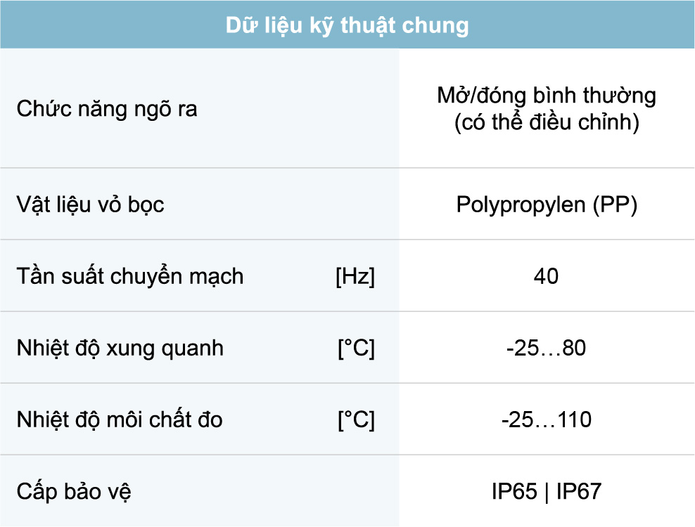 Giá trị quy trình IO-Link cung cấp thông tin về việc thiết lập và cặn có thể có, nâng cao độ an toàn sản xuất và ngăn ngừa thời gian ngừng hoạt động, giúp tiết kiệm chi phí và bảo đảm vận hành trơn tru.Giảm thiểu nguy cơ hỏng hóc hoặc ngừng hoạt động bằng cách phát hiện và tránh được lỗi sắp xảy ra kịp thời. Màn hình LED trực quan tạo điều kiện thuận lợi cho việc điều chỉnh quy trình và cho phép người dùng dễ dàng điều chỉnh điểm chuyển mạch.