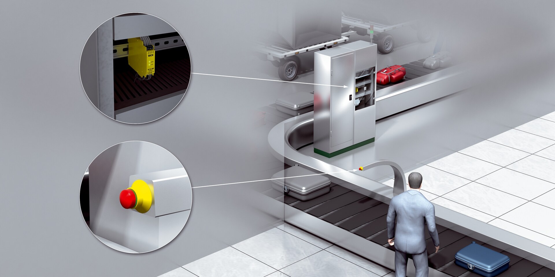 GIẢI PHÁP AN TOÀN CHO BĂNG TẢI HÀNH LÝ SÂN BAY SỬ DỤNG RƠ-LE AN TOÀN RELY & NÚT DỪNG KHẨN CẤP ES21