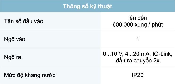 - Dòng điện hoặc điện áp đầu ra tỷ lệ thuận với tần số Tần số đầu vào cao lên đến 600.000 xung/phút
