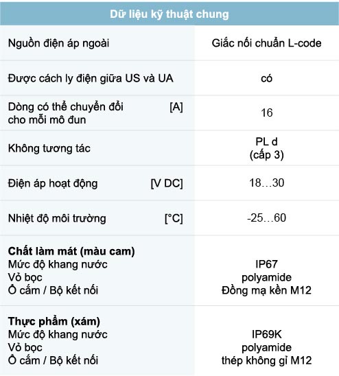 Bộ lọc ngõ vào số, ngõ ra mạnh mẽ (2 A cho mỗi ngõ) Thiết lập tham số và chẩn đoán qua IO-Link
