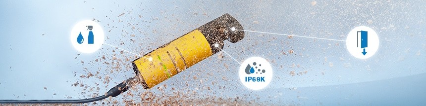 Thiết kế vỏ bo tròn (rounded housing) và đầu khóa mở (open locking head) cho phép vệ sinh nhanh chóng, phù hợp với các ngành yêu cầu độ sạch cao như thực phẩm, dược phẩm, hay thiết bị điện tử.